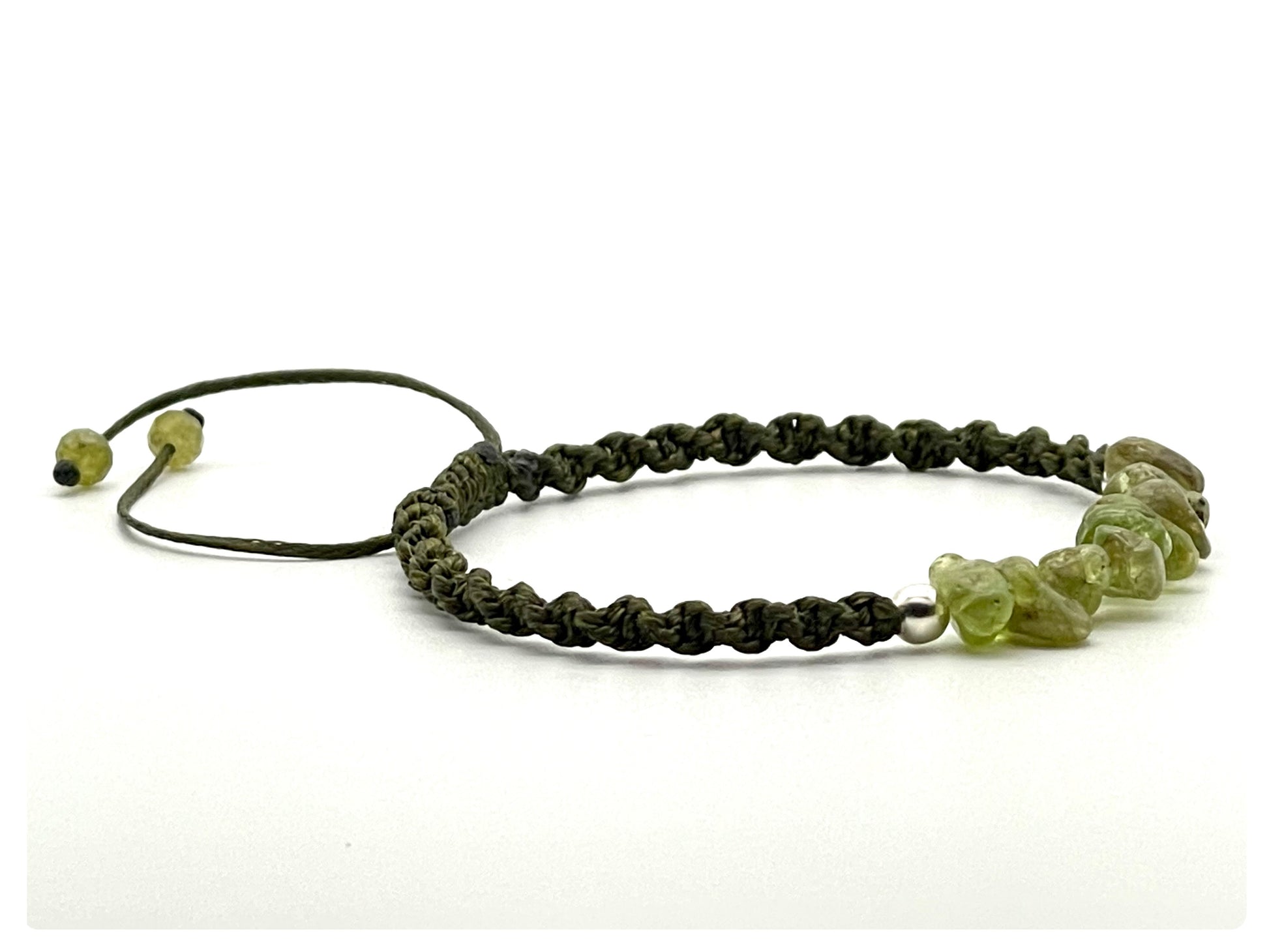 This Gemstone Bracelet is made of Peridot Crystal Chip beads and combined with 925 Sterling Silver Beads.Elegant, Stylish and Natural! Would make a perfect gift for a loved one or for yourself!